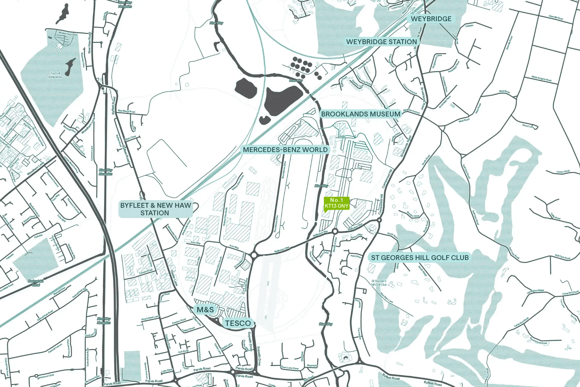 Located in the heart of Weybridge with parking available on-site, No. 1’s easily accessible by car.